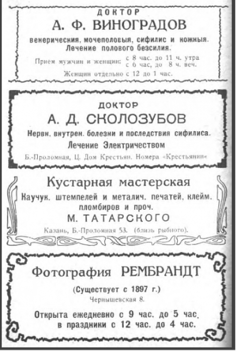 Использованы данные из книги «Справочник путеводитель по гор. Казани» 1925 года. Составлен В. А. Успенским.