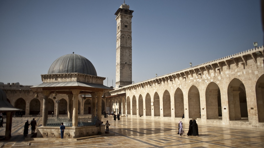 В Средние века города, которые существовали в древности, сохраняют свое значение. Одним из важнейших городов был Алеппо. Он находился на пересечении торговых путей и являлся важным стратегическим центром региона. И сейчас Алеппо, наряду с Дамаском, сохраняет за собой статус важнейшего города страны. Здесь находится вторая по величине мечеть в стране - мечеть Омейядов. Это огромное сооружение размером с несколько футбольных полей. Другая достопримечательность города - Алеппская крепость, которая с древности считалась непреступной. Рядом с мечетью находился второй по величине крытый рынок.