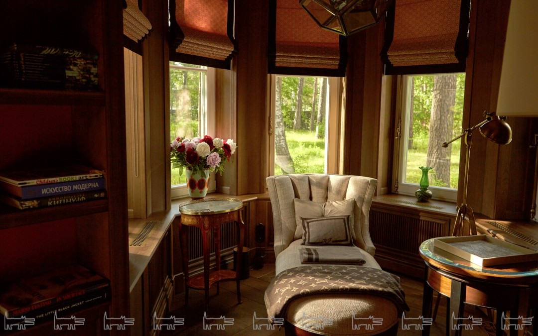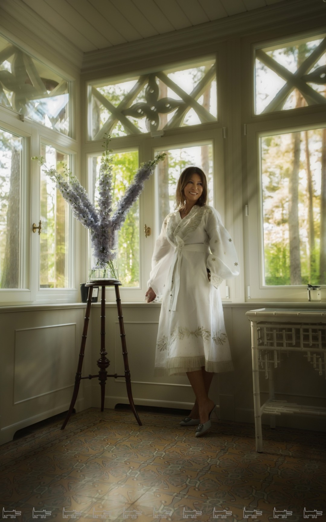 Я не рассматриваю этот дом как вложение, хотя мне с тех пор поступает много предложений его продать. Это наше увлечение, мы с любовью реставрировали его много лет. Сохранено все: фундамент, каждое живое бревно, фасад с деревянными деталями, восстановлены витражи. И мой пример оказался заразителен! (Смеется.) Наши друзья тоже захотели дачи. Не дома, как раньше было принято: все снести и построить заново, а именно дачи. Это совсем другой эстетический код. Я понимаю желание строить огромные современные виллы с бассейнами, но, знаешь, во Франции и Италии живут в старых замках с историей — вот и я так же. Я сохранила наследие нашей культуры. Как владелица этого дома, я осознаю его не просто как жилище, но как нечто большее, значимое, обладающее художественной ценностью. Это настоящая роскошь в самом подлинном смысле этого слова.