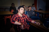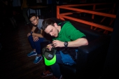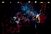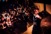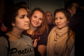 Даже в то время, когда начался разогрев от американского рэпера Sedated, на входе в клубе еще стояла внушительная очередь. Многие, как выяснилось, ходят на каждый концерт Оксимирона. Sedated несколько раз признался в любви к России, а после устроил фотосессию со слушателями.