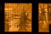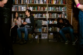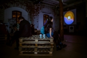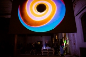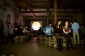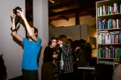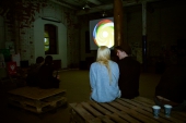 Пока в зале, где располагается книжный магазин, играли диджеи, в большом зале можно было взглянуть на Untitled III - в круге цвета, в центре которого размещался кружок из фольги, а вокруг переливалось цветастое марево в духе визуальных экспериментов 60-х. Такая же проекция шла во время выступления Gyves - от черно-белых экспериментов до помешательства.