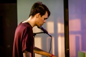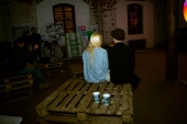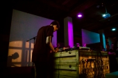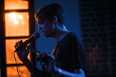 К примеру. когда Соболев начал свое выступление, половина зрителей все еще сидела в другом помещении и не догадывалась, что концерт уже стартовал. Сосредоточенный Дмитрий управлялся с грувбоксом Roland MC-505, начав с инструментальных треков в духе колд-вейва, а потом перейдя к вокальным композициям. В песнях Gyves нет стремления забивать шоры грохотом и переизбытком информации - ограниченность средств здесь во благо. Зато в этих электронных экзерсисах есть лиризм и мелодичность, умение очаровывать малыми средствами - в противовес дискотечному бескомпромиссному угару. Как будто кто-то играет для себя поэму вечного одиночества в абсолютной тиши.