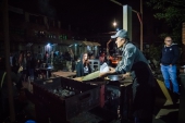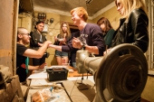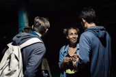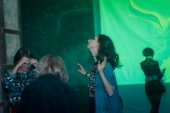 С той поры, как мы в последний раз заходили на фабрику, в ней серьезно прибрались, при этом атмосфера места дикого и неприхотливого сохранилась. С танцпола BNF через дыру можно смотреть, что играют у Re:forms, парочка туалетов настолько пугают девушек, что они собираются домой. При этом общее настроение - весьма светлое (с учетом того, что темнота превращала находящееся в процессе реновации здание в натуральный замок). Здесь явно было мало людей, пришедших посверкать брендами, при этом хватало фриковатых персонажей. Кроме того, лично мы видели людей из мира джаза и «тихих» ивентов, а также девушку в гипсе и юношу на костылях.