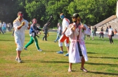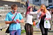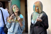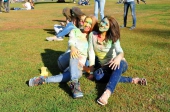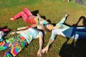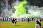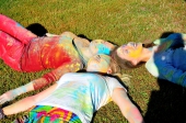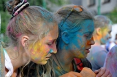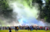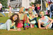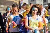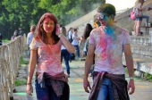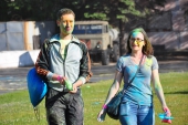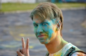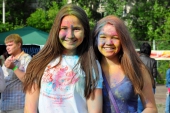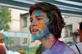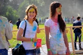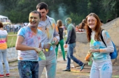 Сотни людей, визжа от удовольствия, хаотично обмазывали друг друга красками под "кришну-кришну, харе-харе". Можно было завести приятное знакомство, получив краской по лицу. Были и недовольные. Но в большинстве своем народ выглядел крайне счастливым, отрываясь на организованной тут же дискотеке. Кто-то просто лежал на травке.