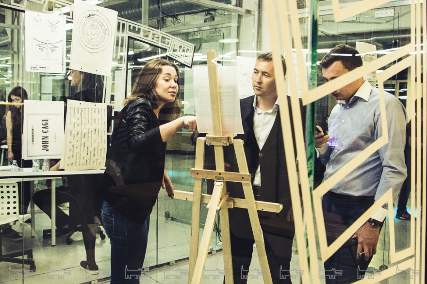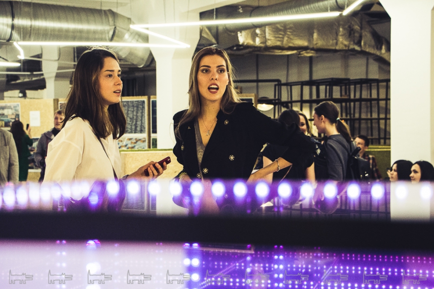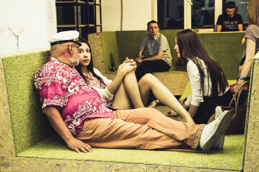Ну, а переплюнуть всех в этом году решил «Штаб». Новообразованный творческий кластер довел стройку до того состояния, что в нем стало комфортно находиться, и организовал свою Ночь аж в пятницу (ради справедливости отметим, что «Штаб» - это вовсе не галерея и не музей, а единственная выставка прошедшая здесь - это собрания фотографий из «Инстаграма»). На втором этаже стеклянные боксы облюбовали парикмахеры, визажисты, стилисты, которые в открытом режиме готовили показ - проект назывался «Анатомия моды». Прочее же казалось вырванным из других площадок. Музыкальная составляющая, состоящая из музыкантов-друзей Артура Хосровяна и Радик Салимов (Ozone Pro) словно бы приехала из Галереи современного искусства - при том, что гулкая акустика в «Штабе» до сих пор не исправлена. Аэрофотографии зданий, как часть выставки - из «Смены».