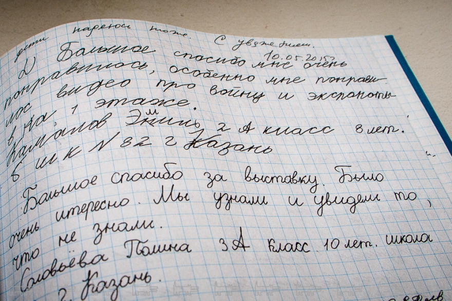 Рядом с выставкой «Вечный человек» работала фронтовая кухня, пели песни под гитару, а дети внимательно смотрели, что нашли на полях битв поисковые отряды «Легион» и «Снежный десант». Тут же участники квеста «Победа» внимательно изучали тексты писателей на тумбах. В музее естественной истории Татарстана большой популярностью пользовался симулятор кабины советского самолета. В «Манеже» Данияр Соколов играл программу «Бетховен и Война», внушительная толпа смотрела документальный фильм Ольги Ившиной «Могила известного солдата».
