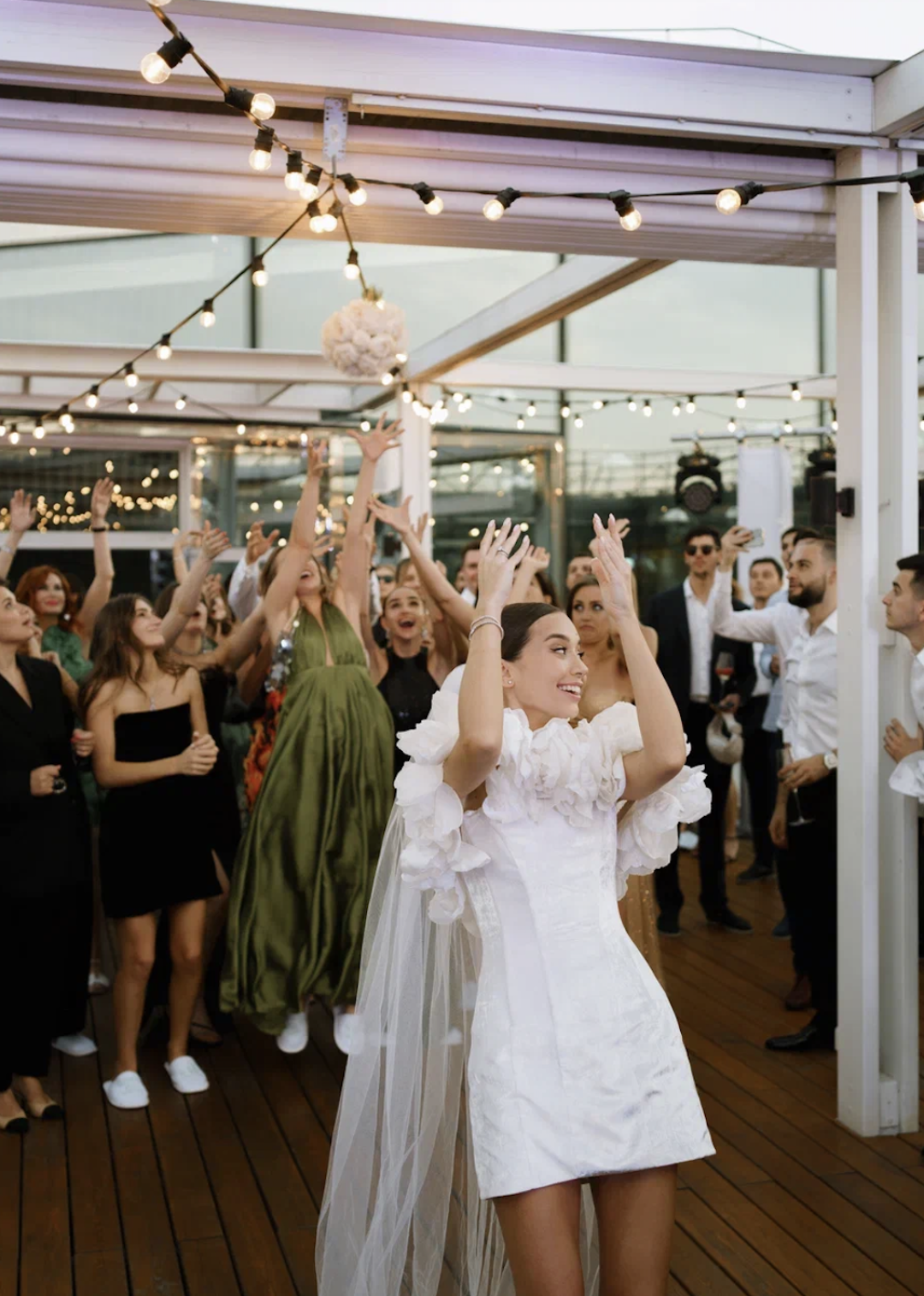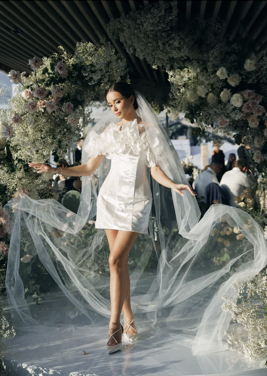 Второе платье — короткое для свадебной вечеринки — было найти даже сложнее, чем первое. Мой выбор пал на Tatyana Kochnovа Atelier петербургского дизайнера Татьяны Кочновой. Потрясающие ткани, фасоны и по-настоящему кутюрные платья. Мое было из белого бархата и больших цветов.