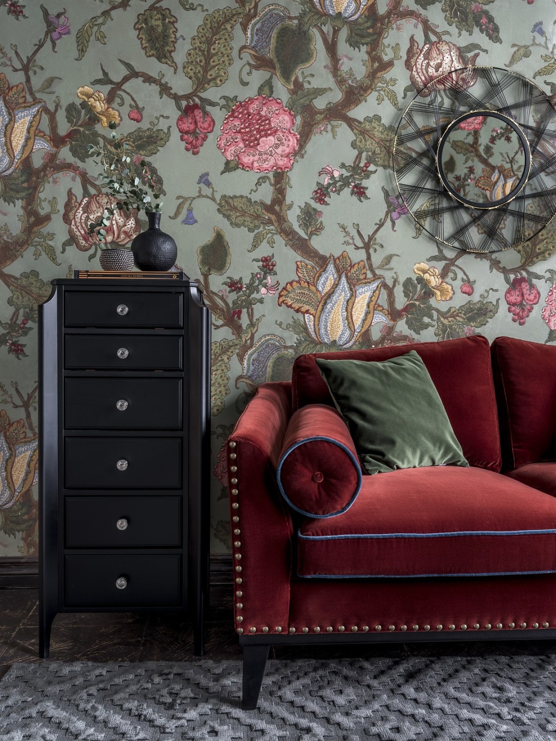 В жанровом отношении этот комод находится где-то на стыке ар-деко и колониального стиля. Плавные изгибы на фасадах в сочетании со скруглёнными ножками отсылают к будуарной тематике. При этом силуэт комода стройный, вытянутый, а рельеф очень сдержанный, лаконичный: матовое покрытие красиво рассеивает цвет и позволяет изделию вписывать в любую цветовую гамму. Шесть (!) вместительных выдвижных ящиков позволят разложить по полочкам все, что до этого не имело в вашем доме конкретной прописки