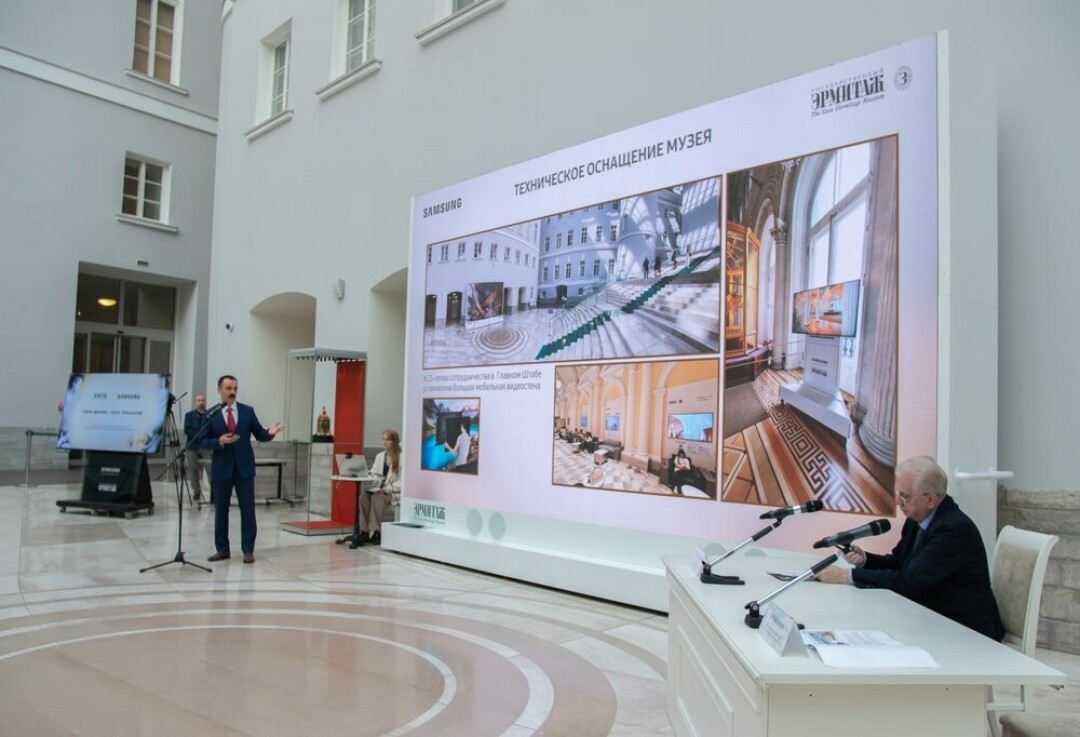 Уже 25 лет Samsung сотрудничает с Государственным Эрмитажем и помогает развивать другие социально-значимые проекты в России, создает образовательные возможности для нового поколения. На пресс-конференции, которая состоялась в историческом здании Главного штаба в Санкт-Петербурге, компания Samsung Electronics поделилась дальнейшими планами и анонсировала запуск нового реставрационного проекта в рамках многолетней совместной программы «Связь времен – связь технологий», которая берет свое начало в 2007 году.
