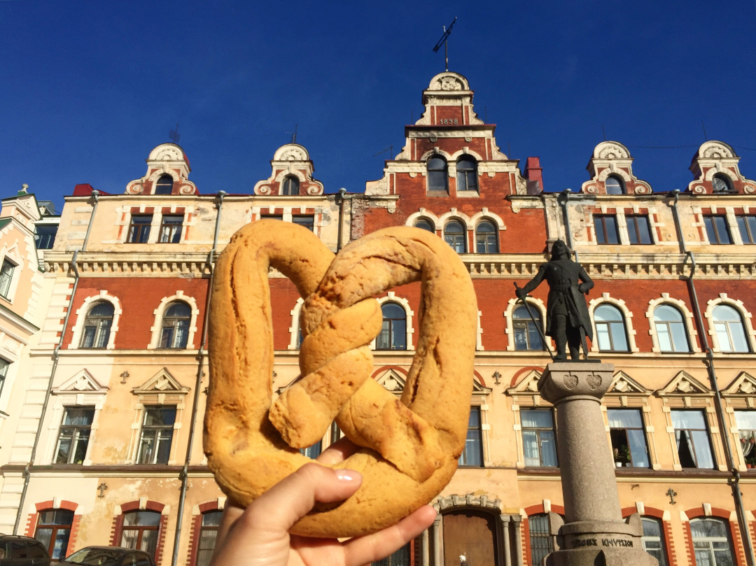 В Выборге с XV века пекут знаменитые крендели — из особого теста со смесью пряностей. В городе много лавок с коваными вывесками в виде кренделей, где их и можно приобрести. На мой вкус, лучшие подают в одном из самых старых домов Выборга — Усадьбе бюргера. В ней есть сувенирная лавка и кафе — это то, что вам нужно.