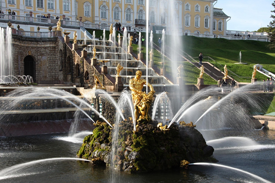 Поезд стартует в 10:00 с Балтийского вокзала, а уже через час прибывает в русский Версаль — Петергоф. Экскурсия начнется с знаменитого Большого дворца (связующее звено в архитектуре Верхнего и Нижних парков). После путешественники смогут пообедать и прогуляться с гидом среди аллей, скульптур и фонтанов. В 17:30 ретропоезд отправляется обратно в Петербург. Обед и экскурсии входят в стоимость билета.