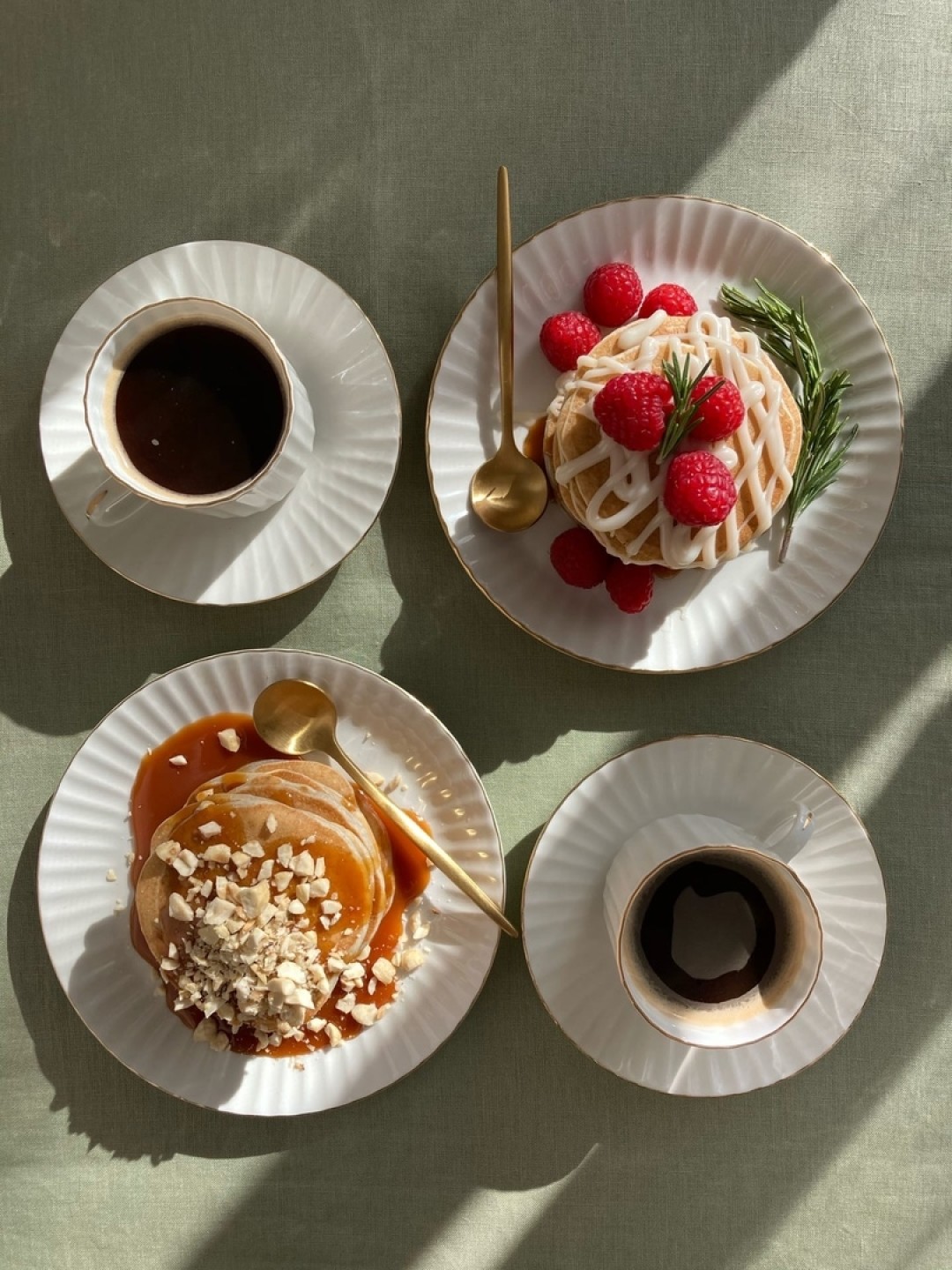 Банановые оладьи с кокосовой карамелью, малиной и фундуком: собираем все лучшее сразу, чтобы было вкусно и красиво.