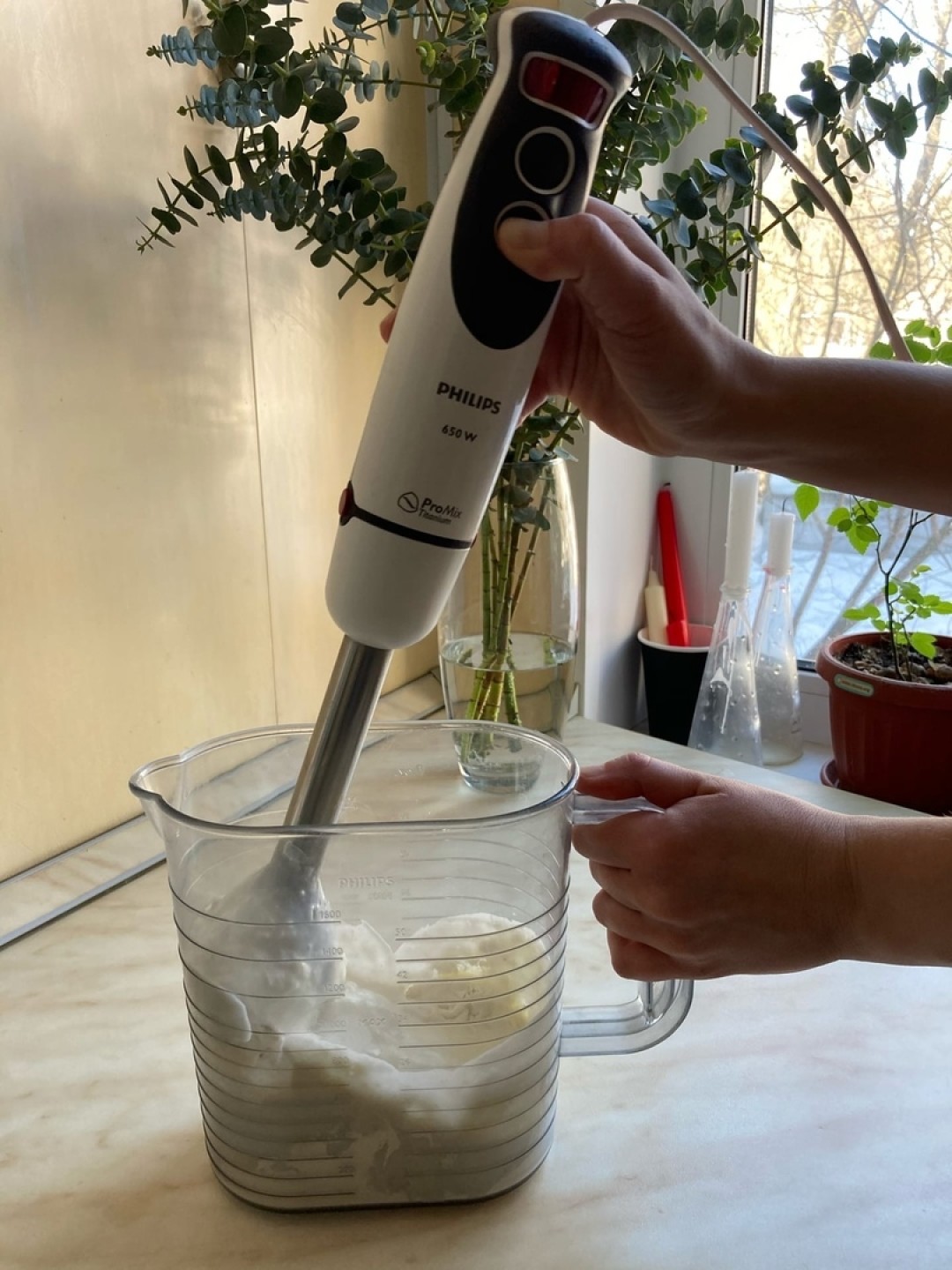 Параллельно можно заняться карамелью. Высыпаем сахар в сотейник, ставим на огонь и ждем, когда сахар растопится. Затем, постоянно помешивая, аккуратно добавляем к нему оставшееся кокосовое молоко, тщательно перемешиваем и снимаем с огня.