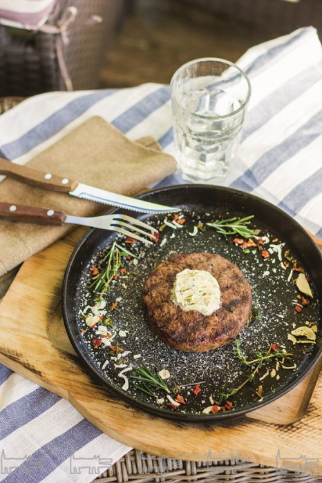 Большой и сочный рубленый бифштекс, приготовленный из говядины зернового откорма, – именно то, что нужно настоящему любителю мяса. Летний соус «Ягодный барбекю» делает вкус стейка более насыщенным и ярким. В качестве дополнения к мясу шеф-повар рекомендует взять овощи-гриль – идеальный сезонный гарнир.