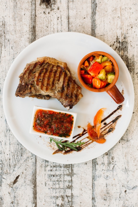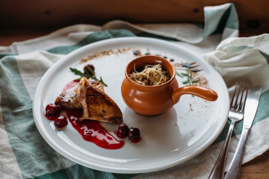 Свиная корейка с рагу и карамелизованной айвой