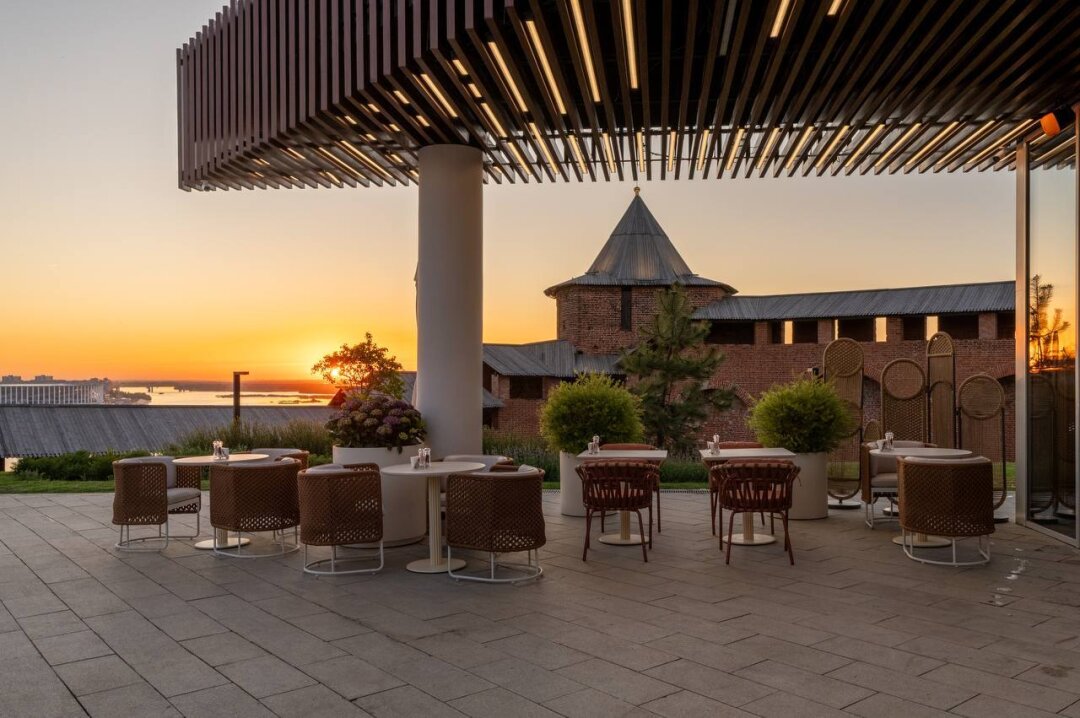 Мы еще помним, как в северо-западной части кремля были лишь заросли, служебные постройки и полупотайная дверь за стену. Спасибо возрожденному спустя почти век фуникулеру — сейчас территория преобразилась, и кафе в новом формате — кажется, как раз то, чего здесь не хватало, особенно летом.