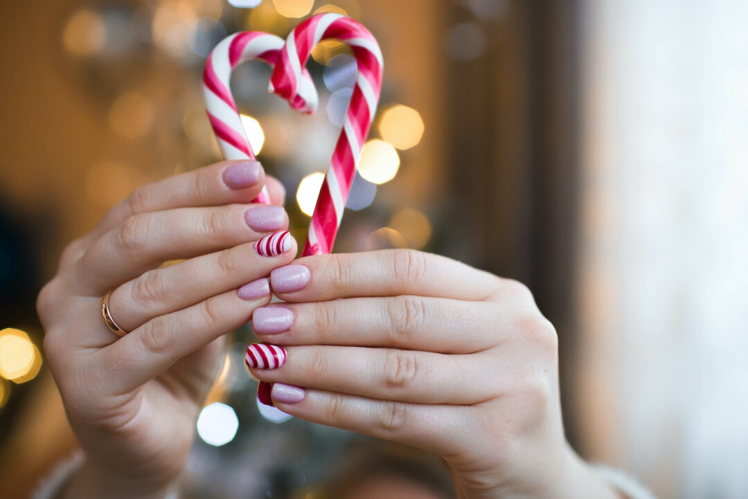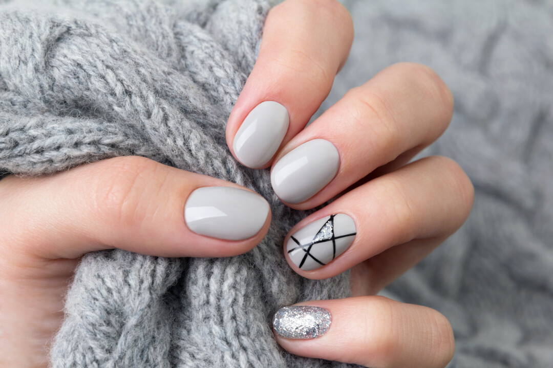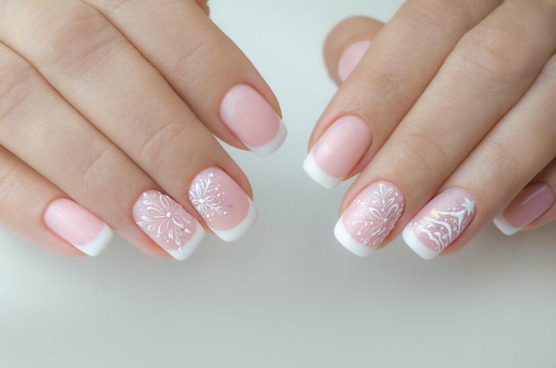 Вовсе не обязательно наносить на ногти мультяшные изображения Деда Мороза и толстый слой глиттера (хотя мы и не против)! Удивите всех — отдайте предпочтение пастельной или нюдовой основе и рисунку белого или угольно-черного оттенка. Такой маникюр — один из трендов сезона.