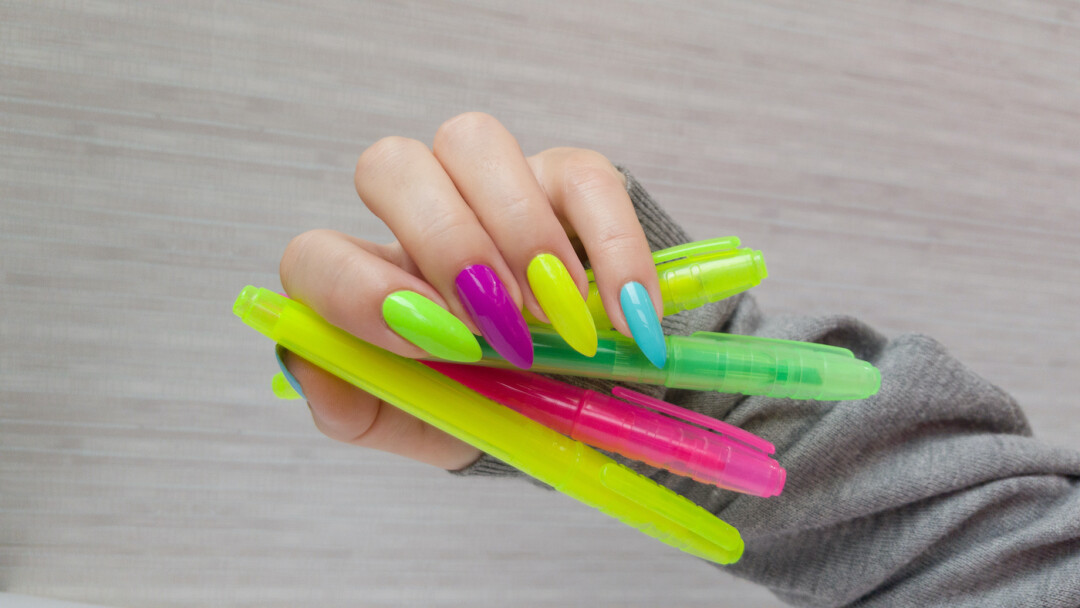 Неоновый маникюр особенно популярен летом, но если зима не радует яркостью, почему бы в нее не добавить цвета? Неон обожают западные звезды и вовсю используют броские оттенки в своих образах. В новогодние дни рекомендуем выбрать неоновый маникюр с блестками или разноцветный — это сразу придаст рукам праздничный вид.