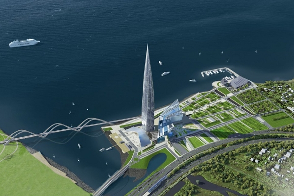 Ранее «Газпром» хотел построить свой исполинский бизнес-центр на Охтинском мысу, прямо напротив Смольного собора. Кампания протеста, проведенная градозащитниками, заставила изменить планы. Вице-премьер правительства РФ Дмитрий Козак назвал «компромиссом» решение перенести строительство в район Лахты. Однако градозащитники с этой оценкой не согласны.
