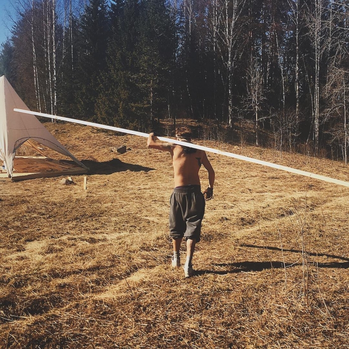 Двум моим подругам — Юле Мельниковой и Соне Сердюк. Юле пришла эта идея в голову, когда она занималась йогой. Оказалось, Соня думала о том же самом. Вместе мы выбрали участок на озере — правительство Карелии приветствует развитие туризма, поэтому легко предоставляет территории для перспективных проектов. Девочки решили, что палаточных лагерей полно, и это должен быть обязательно глэмпинг — новое слово в путешествиях, марьяж пятизвездочного отеля и кэмпинга. Отрицание комфорта точно так же болезненно фанатично, как и погоня за абсолютным комфортом. А в глэмпинге все гармонично. Мы привезли из Европы десяток бельгийских палаток, назвали их в честь любимых мест в Индии: Касоль, Малана, Чаалаль, Вашишт, Пунхил, Арамболь и Остров Мирный. Еще на территории есть шатер Бомбей — ресторан, в котором повар Миша готовит традиционные карельские блюда, индийские лепешки, а недавно туристы из Дели научили его заваривать чай масала. Он сам построил себе кухню. Когда меня спрашивают, есть ли у нас хоспер или су-вид, я отвечаю: «У нас есть классный нож, а это все, что нужно хорошему повару». Девочки сами занимались декором — привезли пледы из Гималаев, собрали интерьерные мелочи вроде ковриков, подушек и ловцов сновидений из разных стран Азии. А Юлин папа дядя Саша, охотник со стажем, отвечает за печи в палатках и за исправность байдарки. Все думают, что Soul Camp, потому что душевный, на самом деле, он назван по первым буквам имен идеологов проекта Сони и Юли.