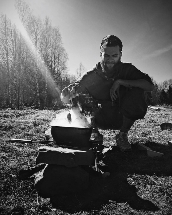 А Кирилл развозит дрова, собирает и сушит веники для бани. Кстати, баню на острове посреди озера мы с моим школьным другом Глебом Гуриным, хранителем лагеря, построили своими руками. А недавно у нас был мексиканец, который, попробовав мое варенье из шишек, весь вечер ходил и восклицал: «Amazing! Amazing!» К нам вообще часто приезжают иностранцы и самые разные люди. Однажды позвонил гость, сказал, что летит с семьей на вертолете. Мы с Глебом пошли на поле, выкосили круг, нарисовали букву Н — пожалуйста, вертолетная площадка. И этот человек сидел со всеми у костра. Природа, в отличие от города, не делит людей на сорта и классы, а, наоборот, уравнивает.