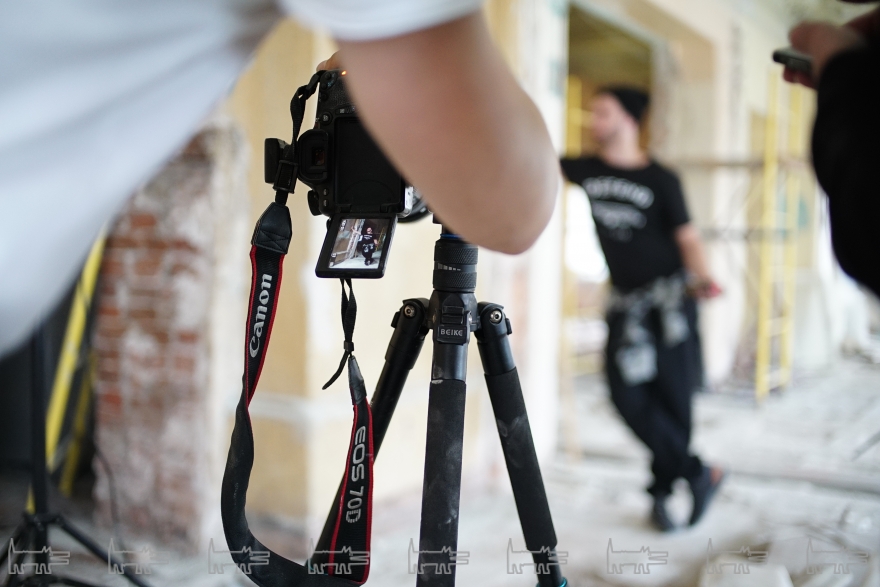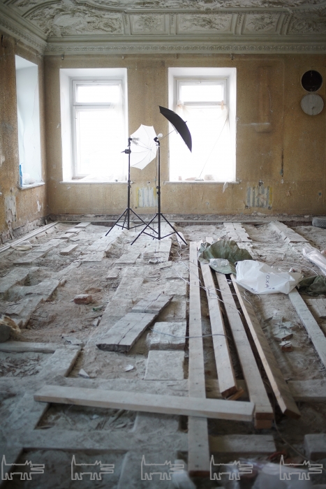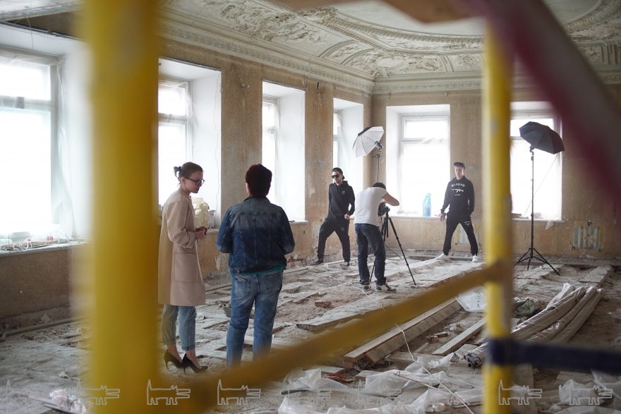 Съемки «НН.Собака.ru» решила проводить именно на втором этаже, куда и пригласила «новых революционеров» во главе с хореографом Денисом Жигальских. В руках - баллончики с краской, под ногами - обломки столетней плитки от камина, рядом со строительными лесами - штатив с фототехникой. Хулиганского вида парни в толстовках жгли дымовые шашки и беззастенчиво мешали ходу реставрационных работ. Но Андрей Моисеенко уверяет: еще полтора века назад те же амуры наблюдали за тем, как изящные дамы музицировали или разыгрывали пьесы для домашнего театра.