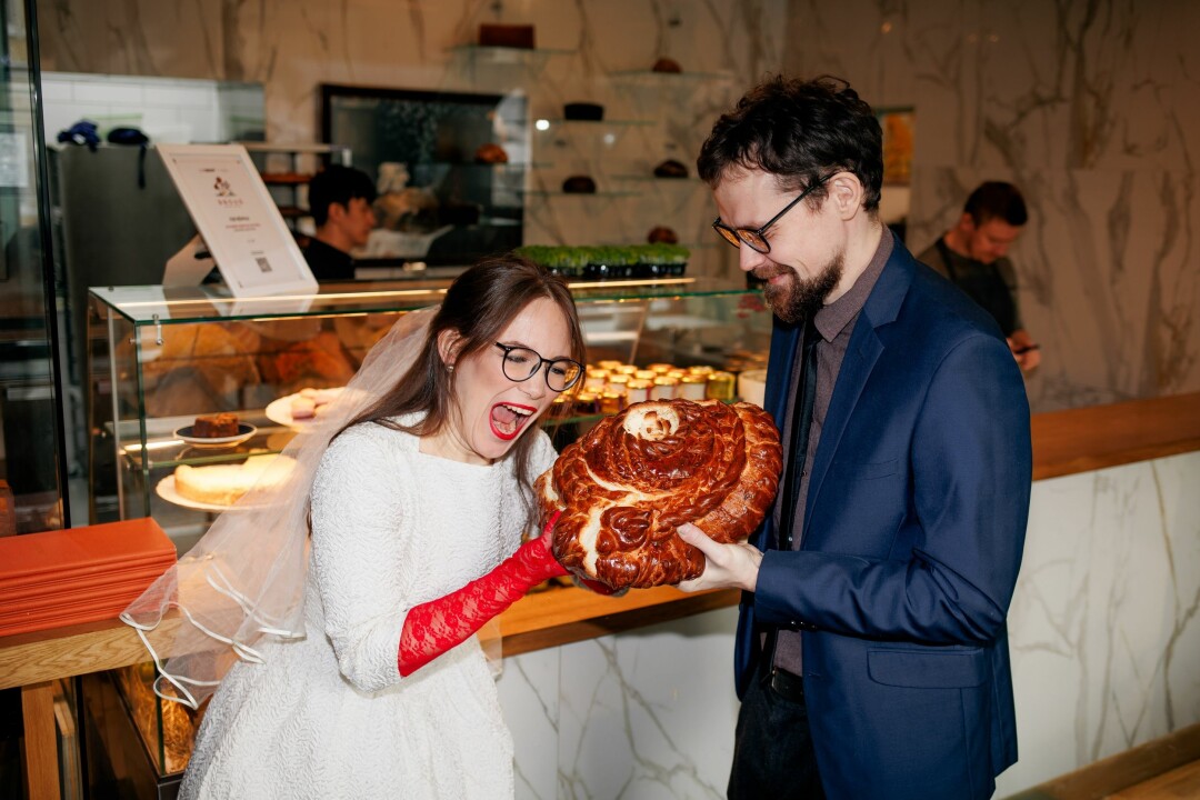 22 ноября 2020 года в 5 утра Андрей написал Юлии в приложении для знакомств, пригласил на кофе — она согласилась. Встретились, начали говорить о еде и сразу поняли, что созданы друг для друга. Поэтому и поженились ровно через полгода, 22 мая 2021 года.