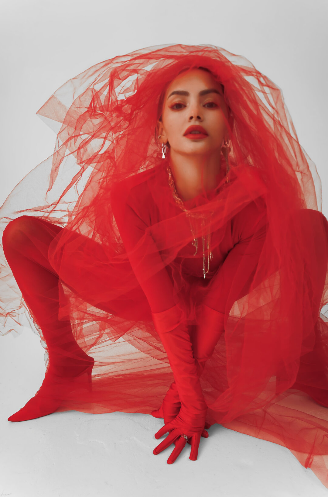 Красный цвет – это энергия и сила, это сама жизнь! Психологи утверждают, что он способен мотивировать к победам. Возможно, поэтому Карина выбирает его с детства, а наш стилист предложил ей, победительнице чемпионатов и первенств, ярко-алый аутфит.