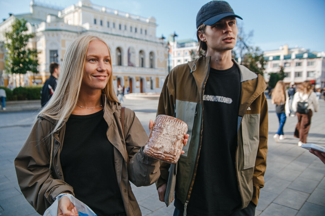 Мы только приехали, поэтому успели пройтись по Большой Покровской и все. Завтра пойдем в «Заповедные кварталы», «Академию Маяк» и на Стрелку, в православную кофейню (проект «ТП-РП 2820» от ИРГСНО и Нижегородской епархииПрим. ред.). Хотим заглянуть в «Горьковскую пивоварню» и чайную «Нитка» — про нее мы узнали благодаря «Архитектурным излишествам». Там часто рассказывают про Нижний*.