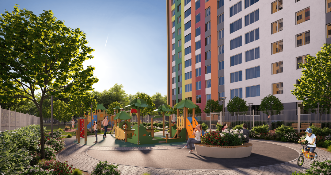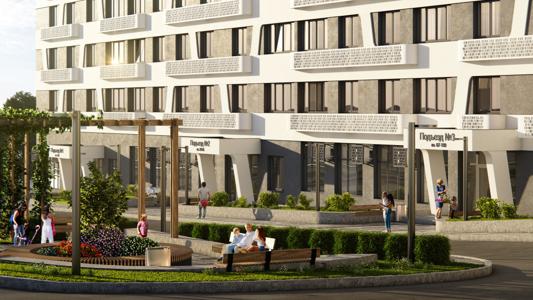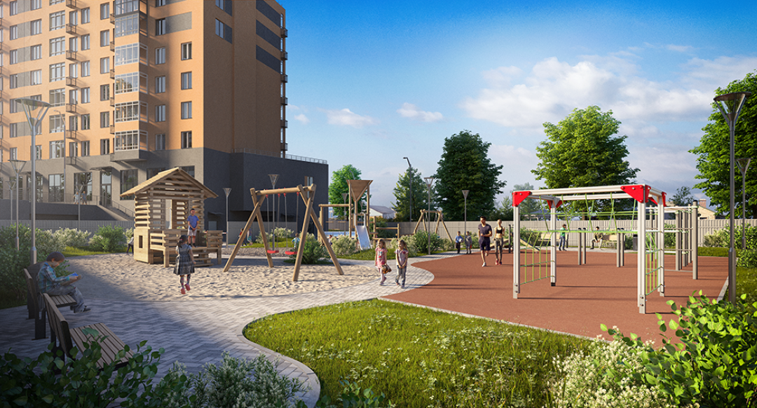 Дизайнерское оформление входных групп, общественные пространства с зоной отдыха, современные детские городки и продуманный ландшафтный дизайн. Внутри комплекса – живописные аллеи для неспешных прогулок, открытые лужайки для пилатеса и йоги, SPA-зона с шезлонгами и скейт-площадка для катания на роликах, скейтбордах и самокатах.