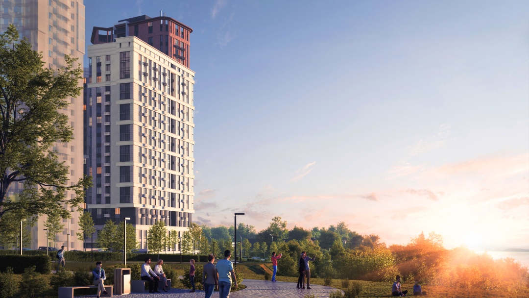 Симбиоз современного жилого комплекса и общественного пространства с видом на Волгу. Проект учитывает запросы жителей спальных районов, создавая альтернативу вынужденным поездкам в центр, где есть и парки, и рестораны. Концепцию набережной разработало архитектурное бюро Станислава Горшунова, номинанта премии «ТОП 50. Самые знаменитые люди Нижнего Новгорода». Набережная становится логичным продолжением жилого комплекса с функционалом общественного пространства, которое будет поделено на пять смысловых зон: площадку с лежаками, трибуну для встречи закатов, барную стойку, локацию для барбекю и пикников, тихое место для медитаций в тени деревьев и территорию для выгула домашних животных.
