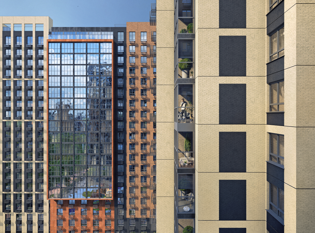 Высокие 19-этажные башни эффектно смотрятся, и при этом из окон открываются виды не на квартиры в соседних домах, а на окружающие пейзажи, создавая пространство, полное света и воздуха. В каждом доме всего один подъезд, чтобы обеспечить кулуарность и комфорт проживания его жителей.