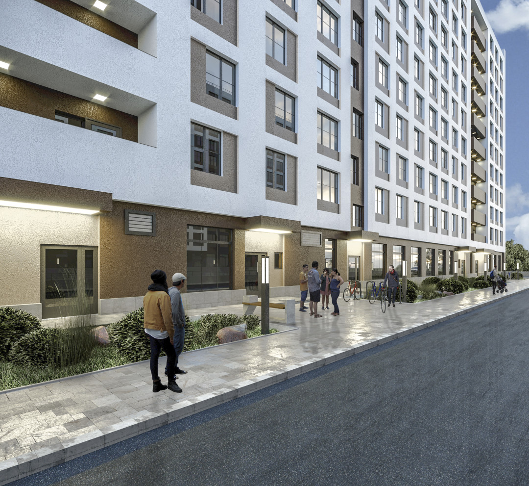 Колясочная на первом этаже сэкономит пространство в квартире. Во дворе дома проведут комплексное озеленение, создадут многофункциональное общественное пространство и спортивную зону, построят детскую площадку.
