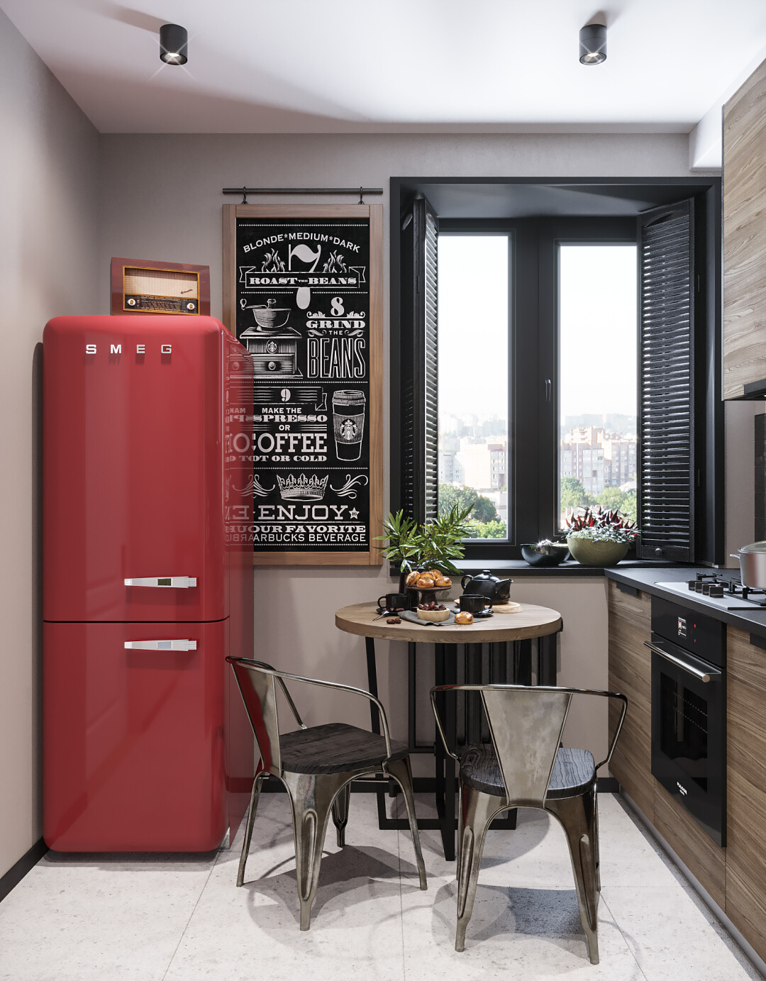 Обратите внимание на технику «два в одном», это серьезно сэкономит место в квартире-студии. Например, стиральная-сушильная машина или духовка с функцией микроволновки. При дефиците места совмещение технических возможностей в одном объекте – это просто находка!