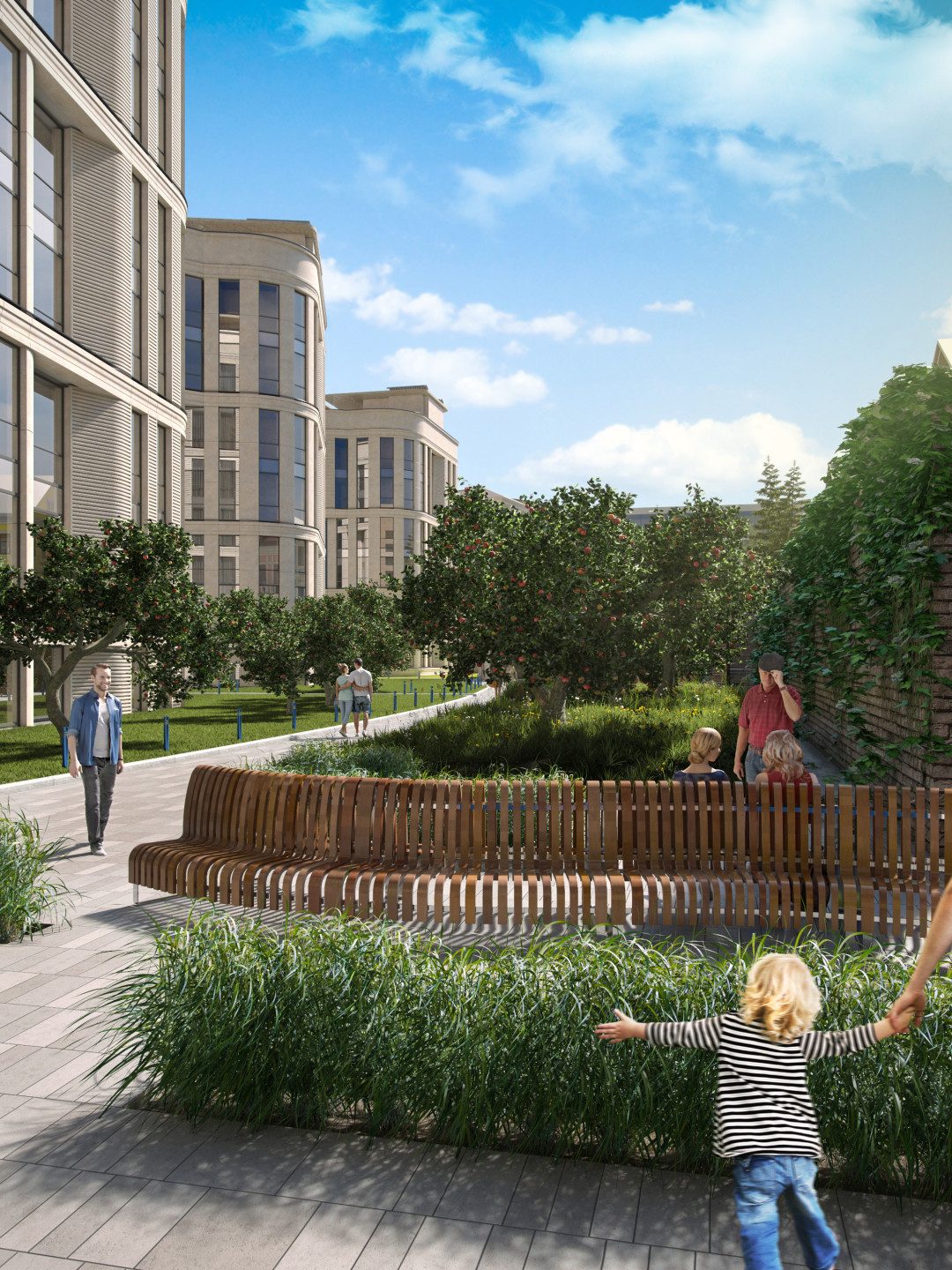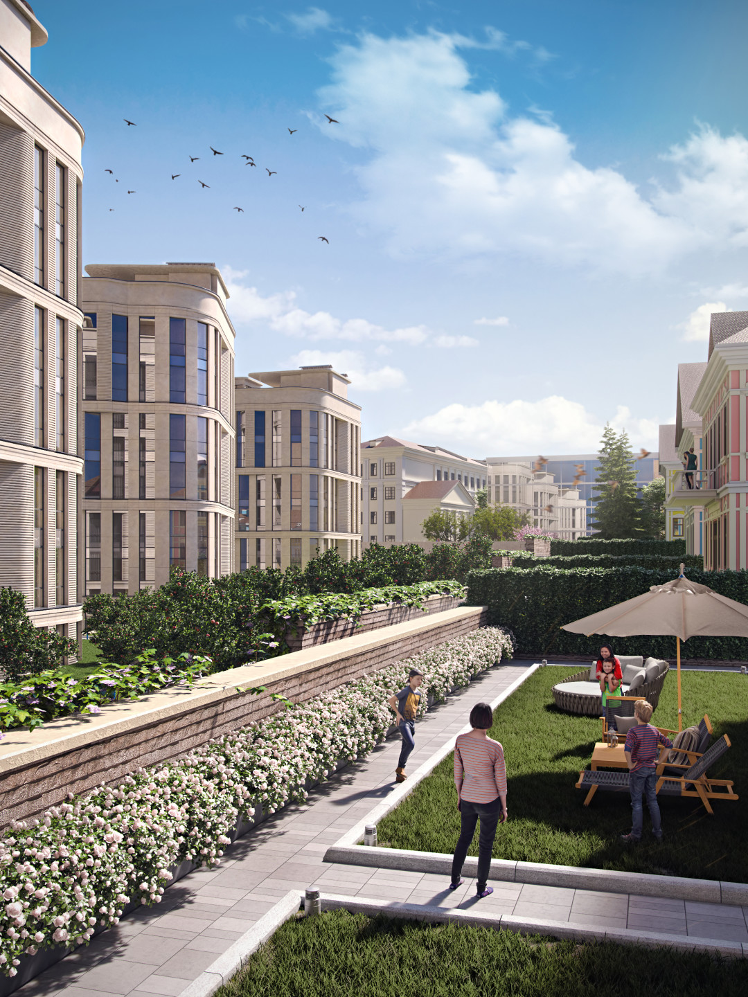 Закрытая охраняемая территория дает не только безопасность, но и уют, ведь квартал буквально окружен парком. Придомовая территория без машин, офисов и магазинов, зато с уютной детской площадкой, аллеями, уединенными лавочками и настоящим яблоневым садом – условия, которые трудно найти где-то еще.
