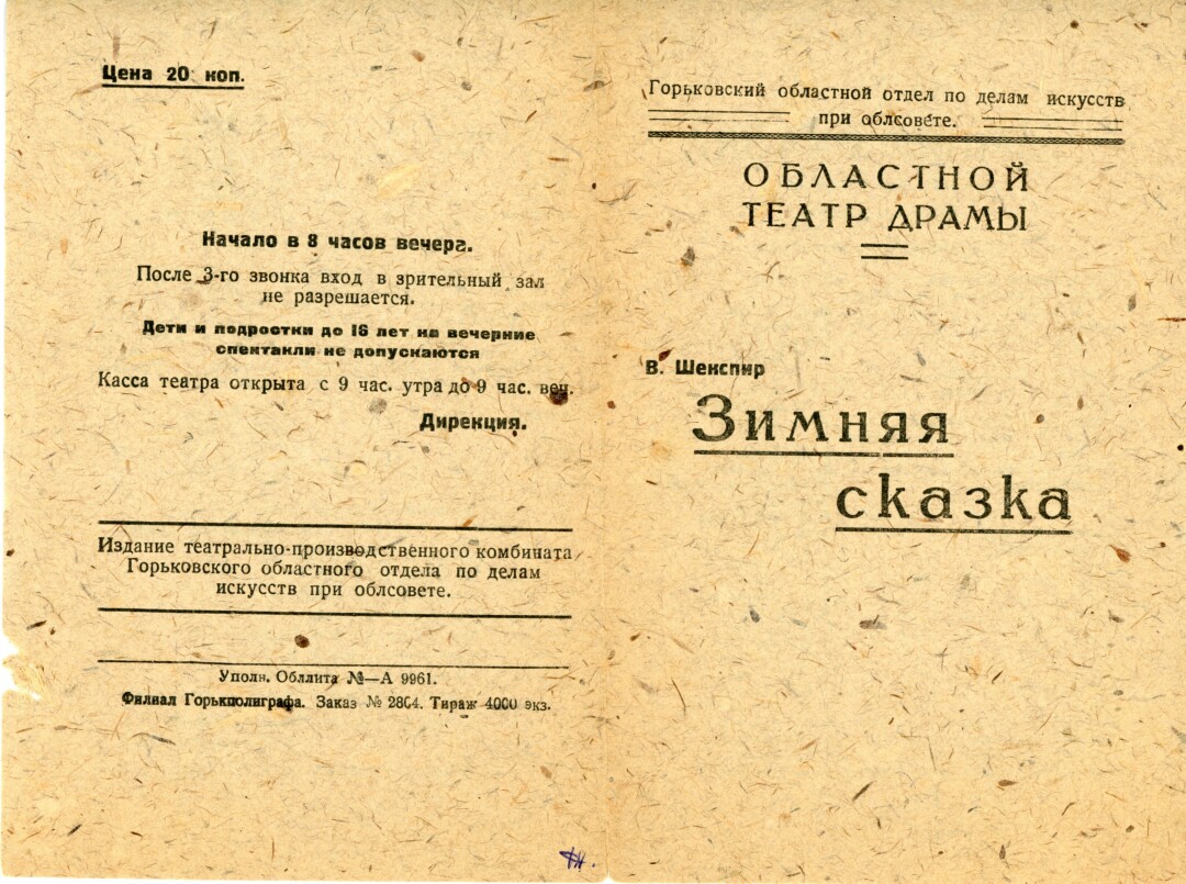 «У нас даже сохранился гастрольный буклет, афиша тех гастролей. Играли в Театре имени Маяковского, тогда он назывался Театр революции. Давали «Дворянское гнездо», «Сон на Волге», «Мещан». А днем 22 июня 1941-го, это было воскресенье, как мы знаем, играли спектакль «Зимняя сказка». И вот актеры играют дневной спектакль, отыгрывают первый акт, а в антракте узнают, что война началась. Представляете, в каком состоянии они играли второй акт, но играли».