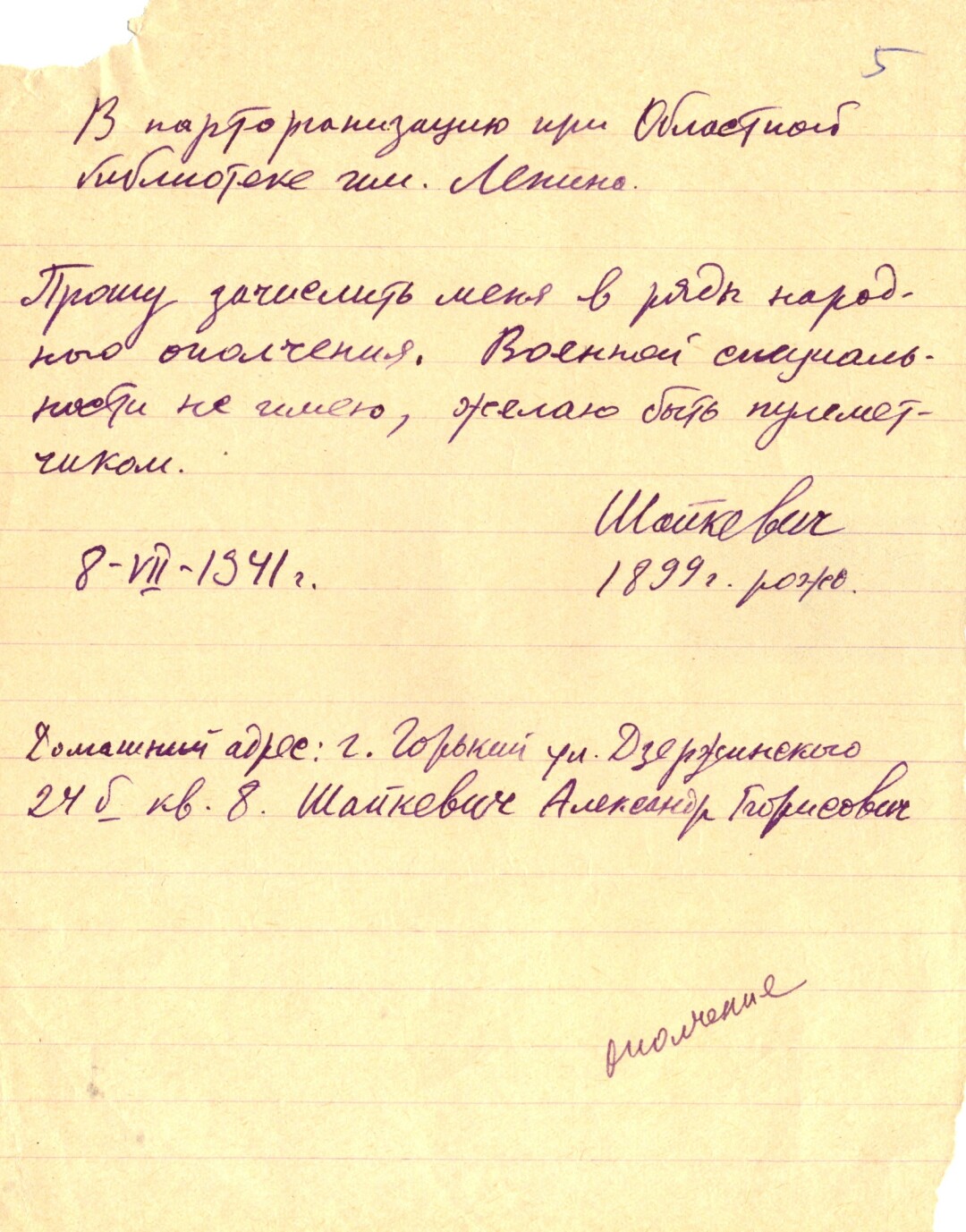 Директор Ленинки Петр Юферев написал заявление с просьбой об отправке на фронт 8 июля 1941 года. Но оказался он там позже, в 1942 году; дойдя до Берлина, вернулся в 1946-м с двумя орденами Красной Звезды.