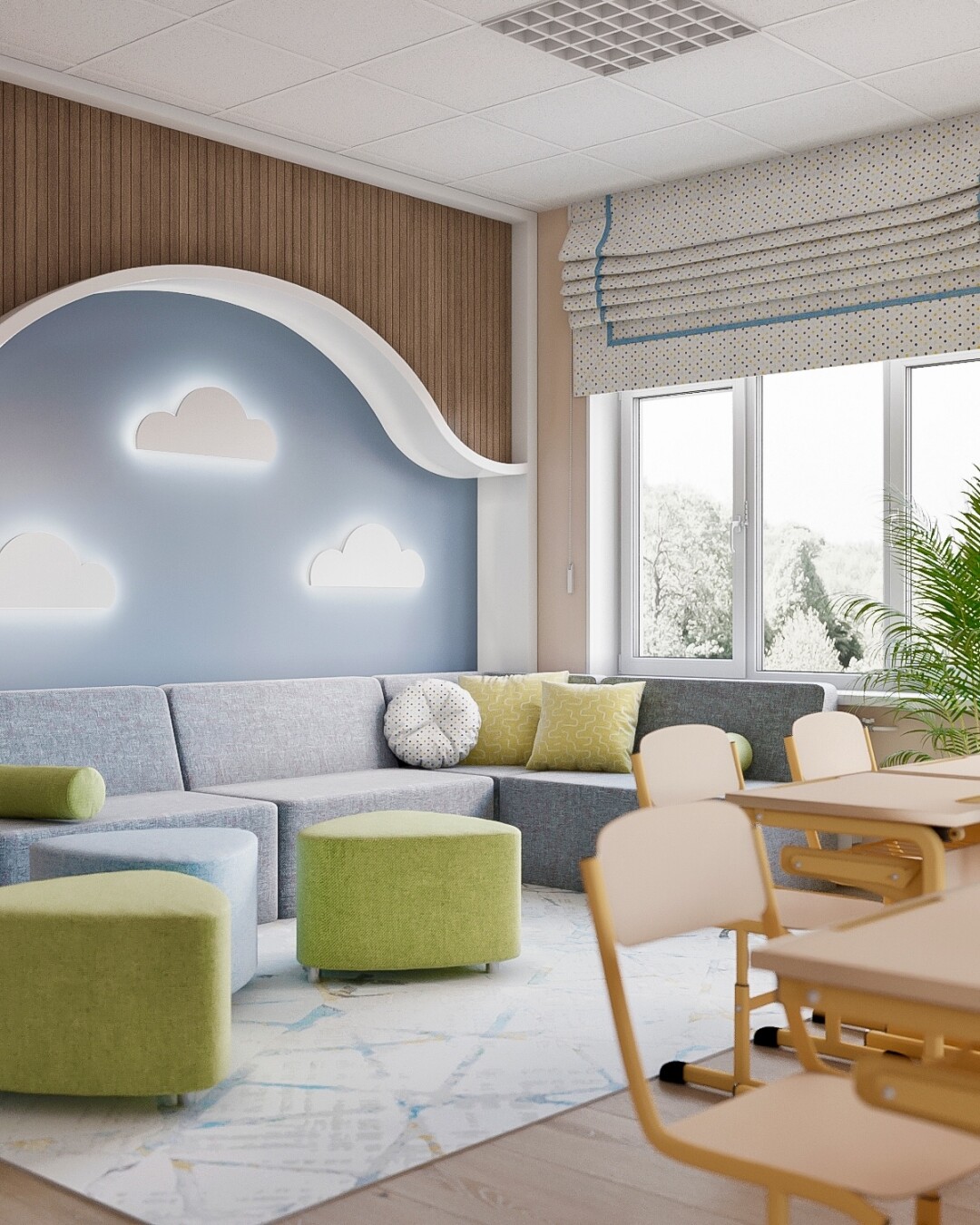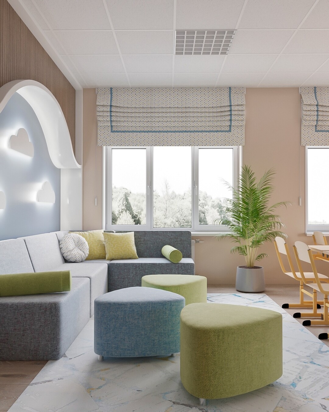 Дети находятся под постоянным наблюдением медицинского сотрудника, который ежедневно проводит осмотры, занимается профилактикой и контролем здоровья. В период обострения заболеваемости медицинская сестра проводит витаминизацию детей с использованием кислородных коктейлей. Также помещение каждой группа оборудовано рециркулятором и увлажнителем воздуха.