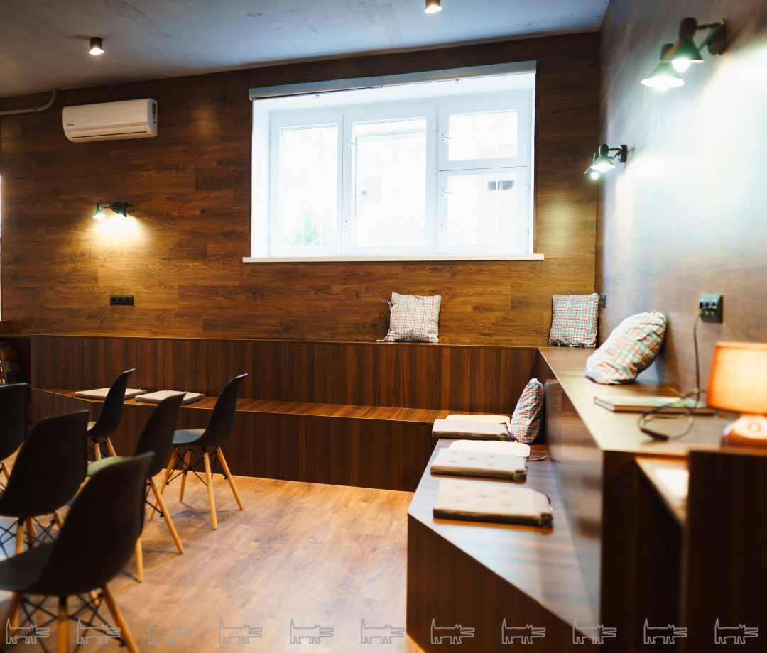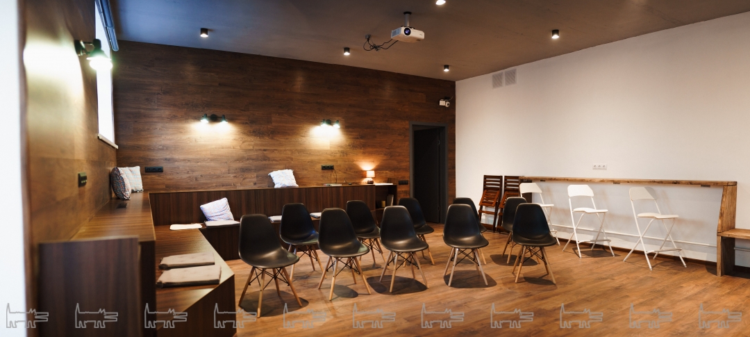 Дизайн интерьера продумали сотрудники архитектурного бюро Стаса Горшунова, благодаря чему пространство позволяет почувствовать себя как дома: выпить чай на кухне, послушать выступление спикера в лекционном зале или обсудить волнующие вопросы в кабинете с мелованой доской.
