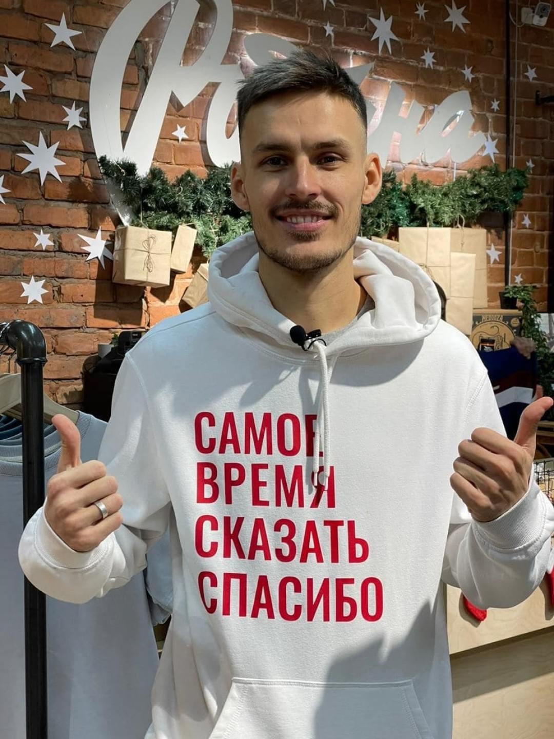 Сначала в нашей линейке появились толстовки с фразами «Самое время сказать спасибо» и еще один минималистичный вариант со словом «спасибо». Сейчас к толстовкам мы добавили белые вязаные шапки. Проект был спонтанным, а производство мерча запущено в сжатые сроки. Но мы справились и сейчас наблюдаем, как инициатива претворяется в жизнь.