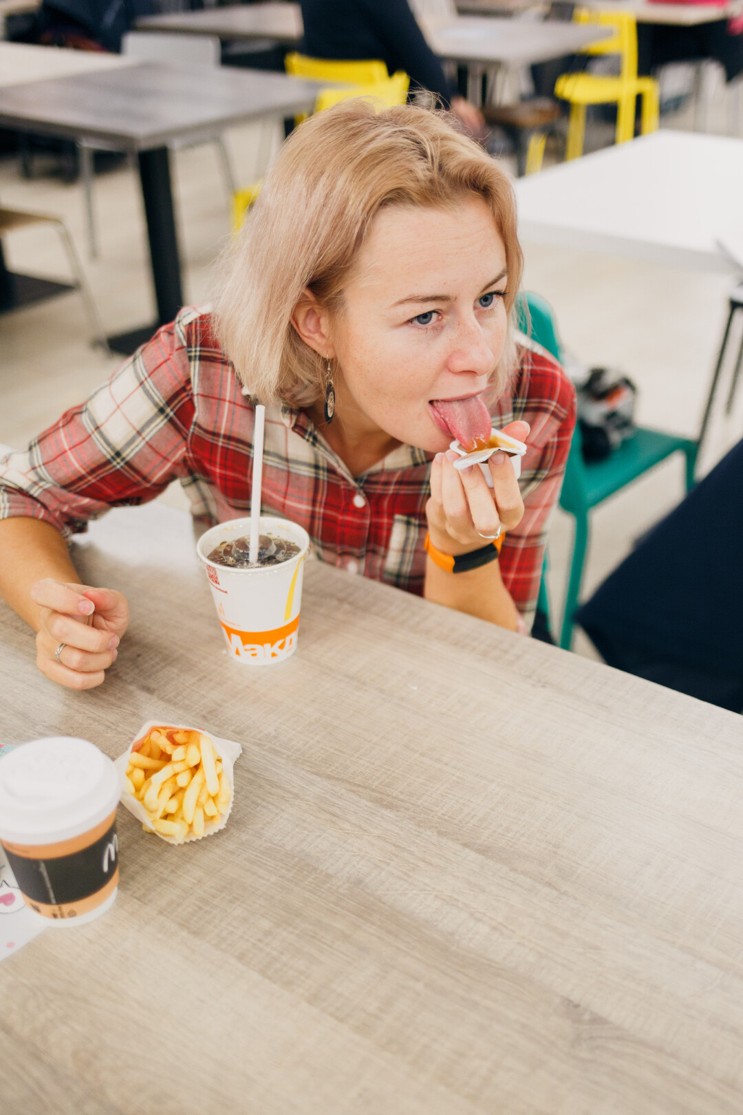 Нас было трое, и всем стало плохо. Брали двойные чизбургеры и что-то с курицей. Напитки супер-разбавленные. Мы не постеснялись и попросили поменять. Все без разговоров поменяли, но лучше не стало. Мак я любила, но что-то после трансформации в Точку туда больше не хочется.