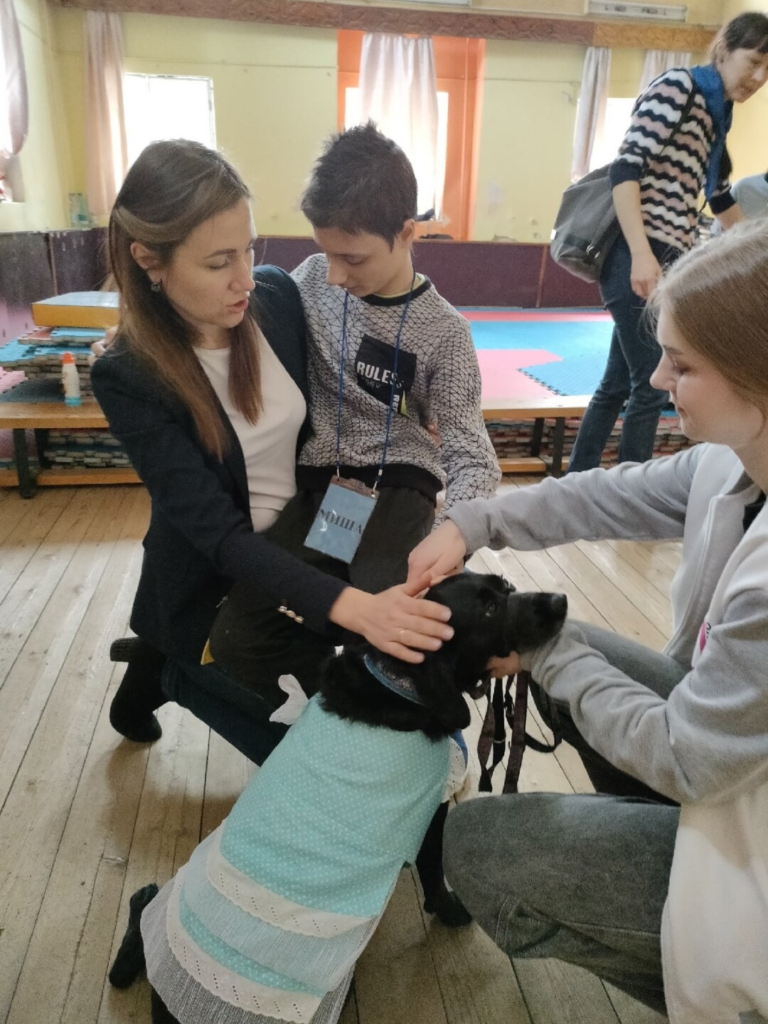 Дети у нас в клубе занимаются самой разной дрессировкой, и когда у тебя что-то получается, тебе этим хочется с кем-то поделиться. Когда мы впервые услышали про канистерапию, нас это заинтересовало, решили попробовать. И нам, конечно, было страшно вначале браться за эту тему: с одной стороны – дети, дети-кинологи и с другой – дети, дети с РАС. Большая ответственность. У нас было много вопросов к самим себе, получится ли, сможем ли мы друг с другом найти общий язык, но все-таки решились. Мы пришли в школу № 4 с этой идеей, и нам доверились. Первые шаги у нас, конечно, были неуверенные, пытались освоиться в этом особом мире. Нашим ребятам было непросто, потому что они не сталкивались в обычной жизни с такими детьми, это ведь не всегда воспитанные и сдержанные дети. Нужно было овладеть навыком взаимодействия и даже больше – радушия. Кроме того, у наших детей была задача объяснить, что вообще такое собака и как с этой собакой работать.