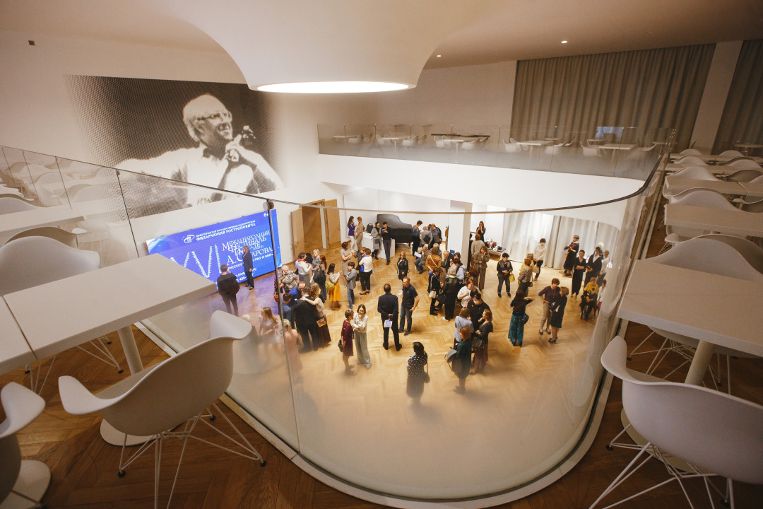 Установлен большой мультимедийный экран: теперь гости смогут не только насладиться музыкой, но и посмотреть трансляции концертов, послушать лекции. Появились арт-объекты «Портрет Ростроповича» и «Летающие партитуры», второй этаж украсили картины.