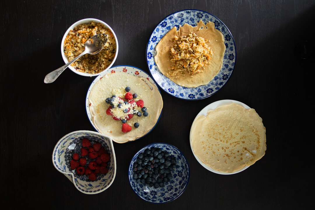 Блины мы едим крайне редко, но иногда так хочется отойти от правильного питания! А еще, блинчики – это настоящий простор для творчества. Дети конечно любят что послаще, поэтому выбирают варенье или свежие ягоды. Мы, взрослые, стараемся окончательно о здоровом образе жизни не забывать и даже блинчики едим с суперфудами вроде киноа – получается эдакий «фьюжн» из русского и заморского.