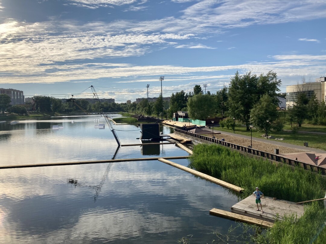Вейкбординг — это как серфинг, только на электротяге или тросе. Лютый тренд, который будет в сториз всех запрещённых соцсетей. А ещё здесь можно арендовать оборудование (вейкборд, гидрокостюм) или взять сап.