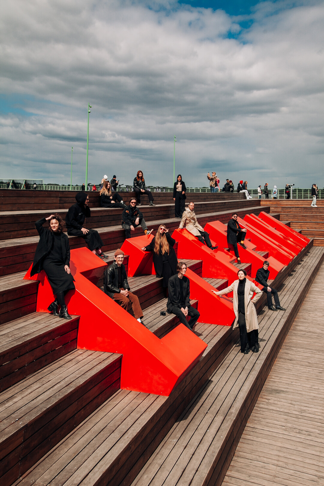 Мы создали социальную сеть из парка на набережной Федоровского. С разных амфитеатров, качелей и скамеек смотришь вдаль, созерцаешь природу, ее красоту и силу, но можешь и понаблюдать, как у подножия амфитеатра и на террасе перед тобой разворачивается жизнь других людей: кто-то играет на гитаре или барабанах, а где-то танцуют или снимают видео.