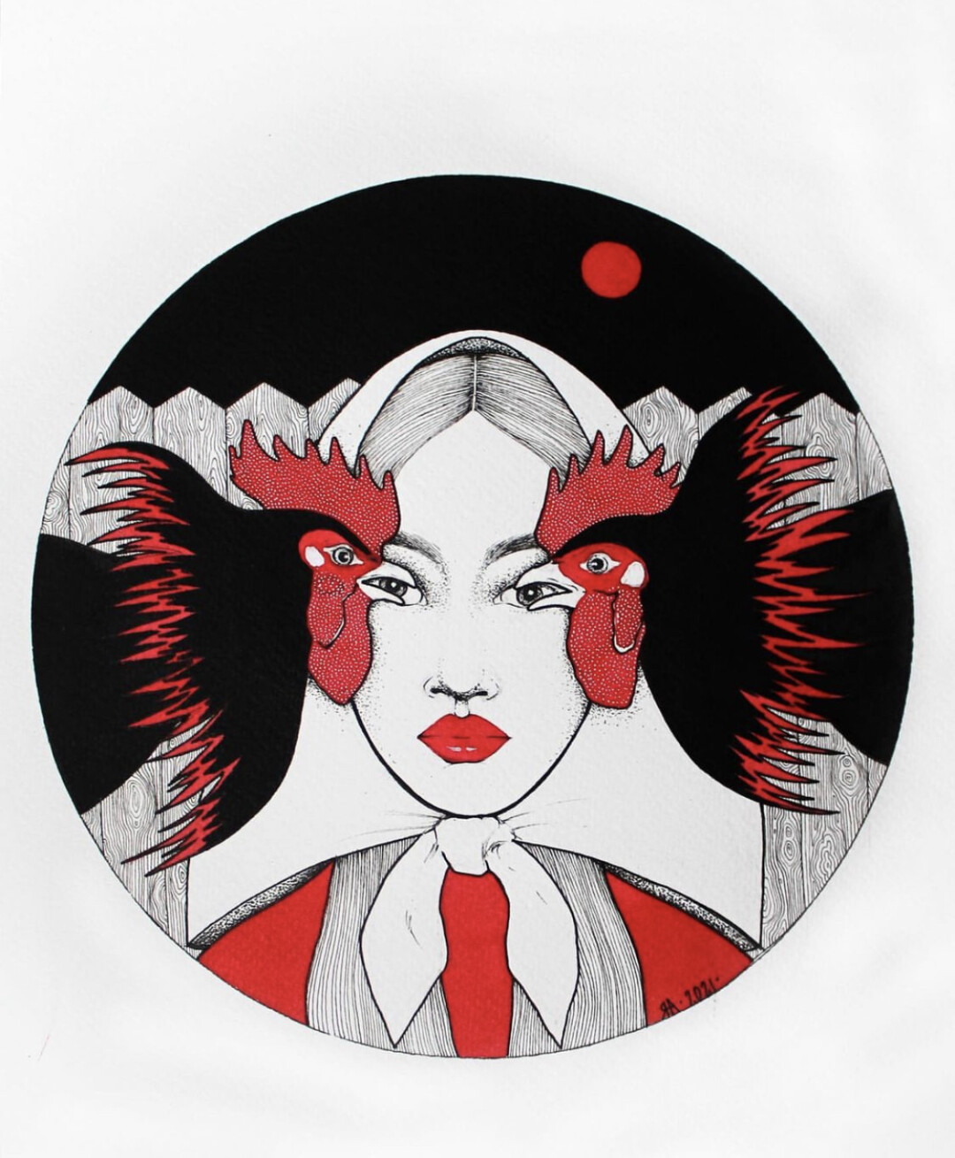 Моя коллекция началась сразу с нижегородских козырей - мне подарили шелкографию Артема Филатова «Соседство». Это тиражная работа, но я в неё просто влюбилась. Она - первое, что я вижу, просыпаясь по утрам. Первой самостоятельно купленной стала тушь Яны Антоновой «Петухи» за 12 тысяч рублей. Я просто узнала в работе своё внутреннее состояние на тот момент и не смогла пройти мимо. Это было на выставке АртМир. И, можно сказать, я даже ввела моду на Яну, потому что ещё несколько моих знакомых купили ее работы после того, как увидели «Петухов» у меня в гостях и соцсетях. Сейчас ее работы подорожали.
