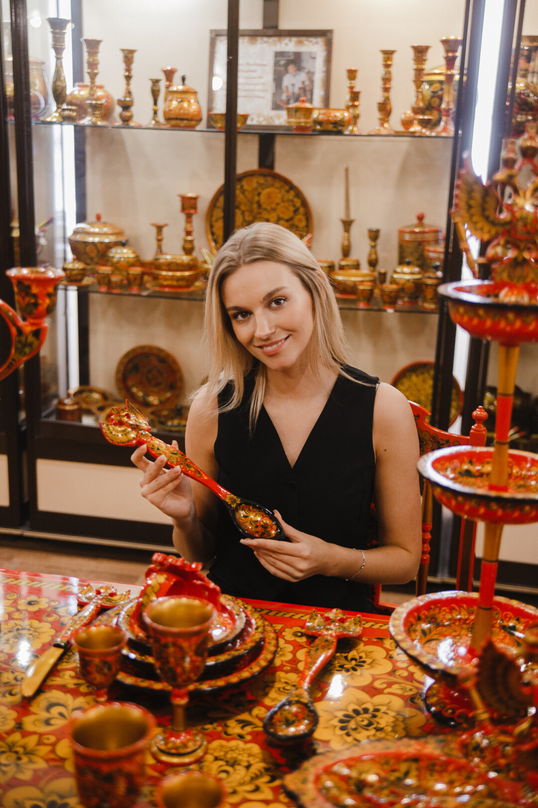 Я познакомилась с мастерицами АО «Хохломская роспись». И, мне кажется, они настоящие феи — создают волшебные узоры. Надеюсь, украшенная их росписью хоккейная клюшка покорит все сердца, и я вернусь с победой.