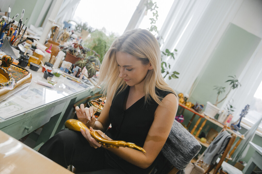 Один из самых крупных российских производителей товаров художественных промыслов АО «Хохломская роспись» разрабатывает и реализует как всемирно известные традиционные изделия, так и дизайнерские линейки с элементами знаменитой хохломской росписи. Например, недавно мастера предприятия украсили хохломой настоящую хоккейную клюшку. В декабре она отправится во Вьетнам вместе с «Мисс Нижний Новгород» и «Красой России» Дарьей Луконькиной на конкурс «Мисс Земля» представлять народные художественные промыслы Нижегородской области и всей страны на мировой арене.