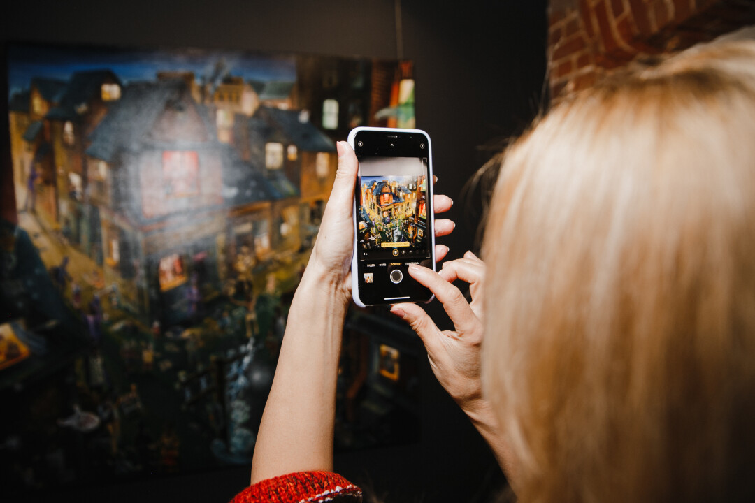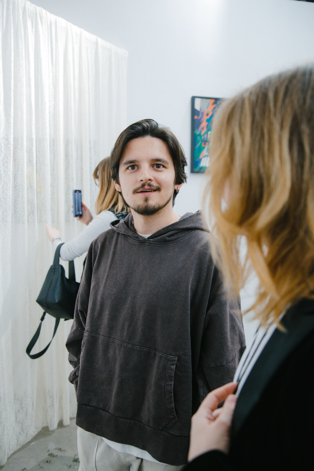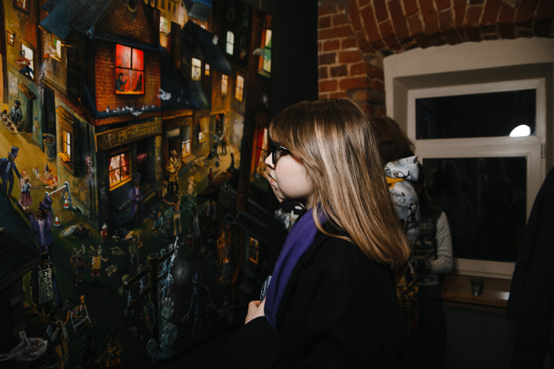 Елена Тальянская, галеристка, сооснователь «Галереи 9Б»: «Впечатления от выставки самые хорошие. Народу много, много знакомых, которые постоянно к нам приходят, много молодых людей, которых вижу впервые, они фотографируют, обсуждают, проявляют интерес. Каждый здесь находит что-то свое. Мне, например, нравится настроение, которое передают картины. Нравится их детальность — можно долго рассматривать и каждый раз открывать что-то новое».